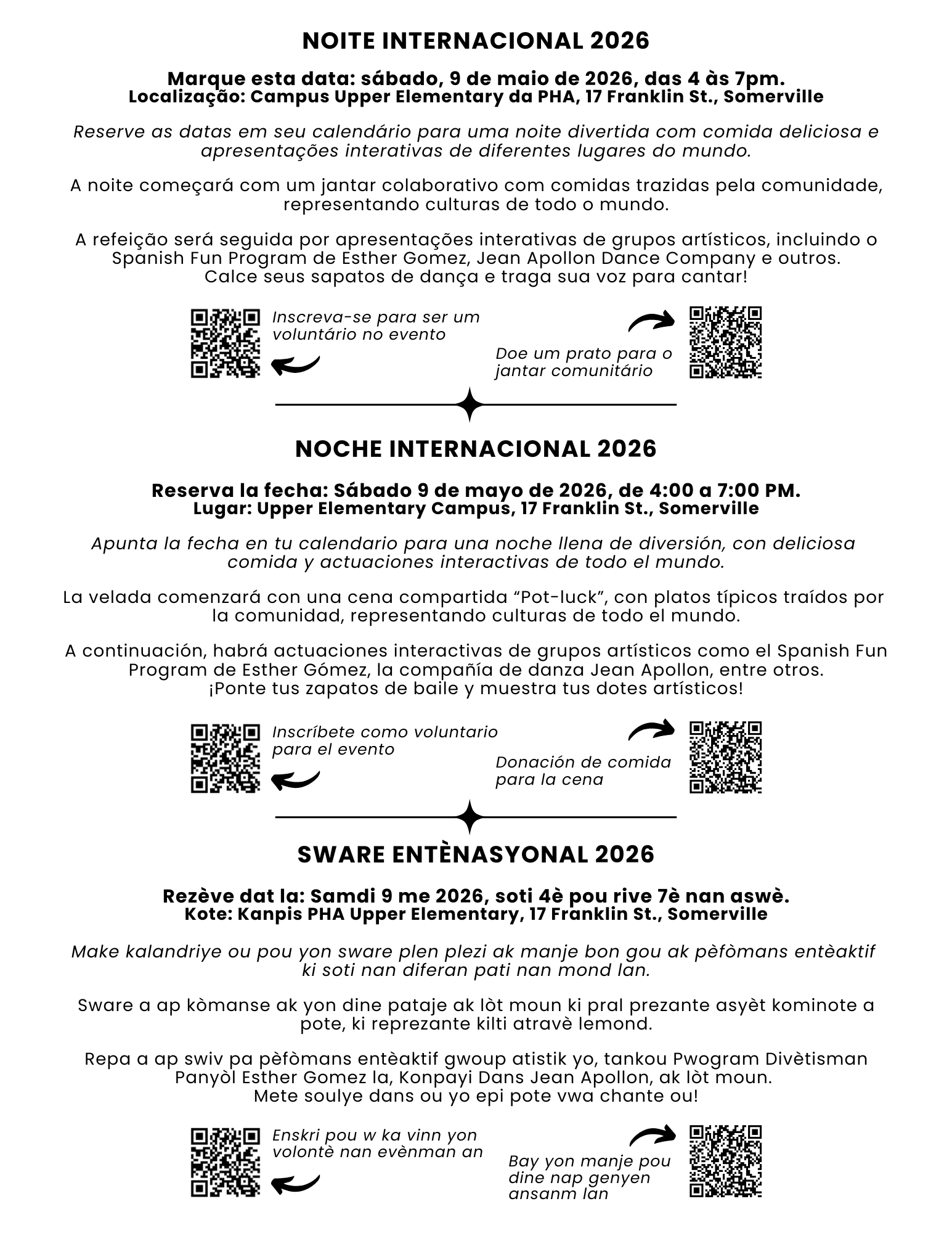 The meal will be followed by interactive performances from artist groups including Esther Gomez’s Spanish Fun Program, Jean Apollon Dance Company, and more. Put on your dancing shoes and bring your singing voice!
